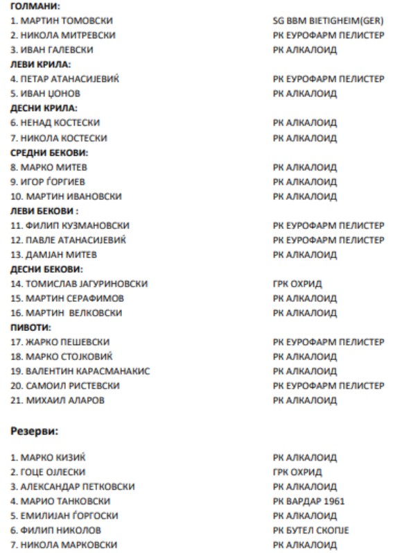 Селекторот на машката ракометна репрезентација на Македонија, Кире Лазаров, денеска го соопшти поширокиот список на играчи за подготовките пред настапот на Европското првенство во 2026 година.