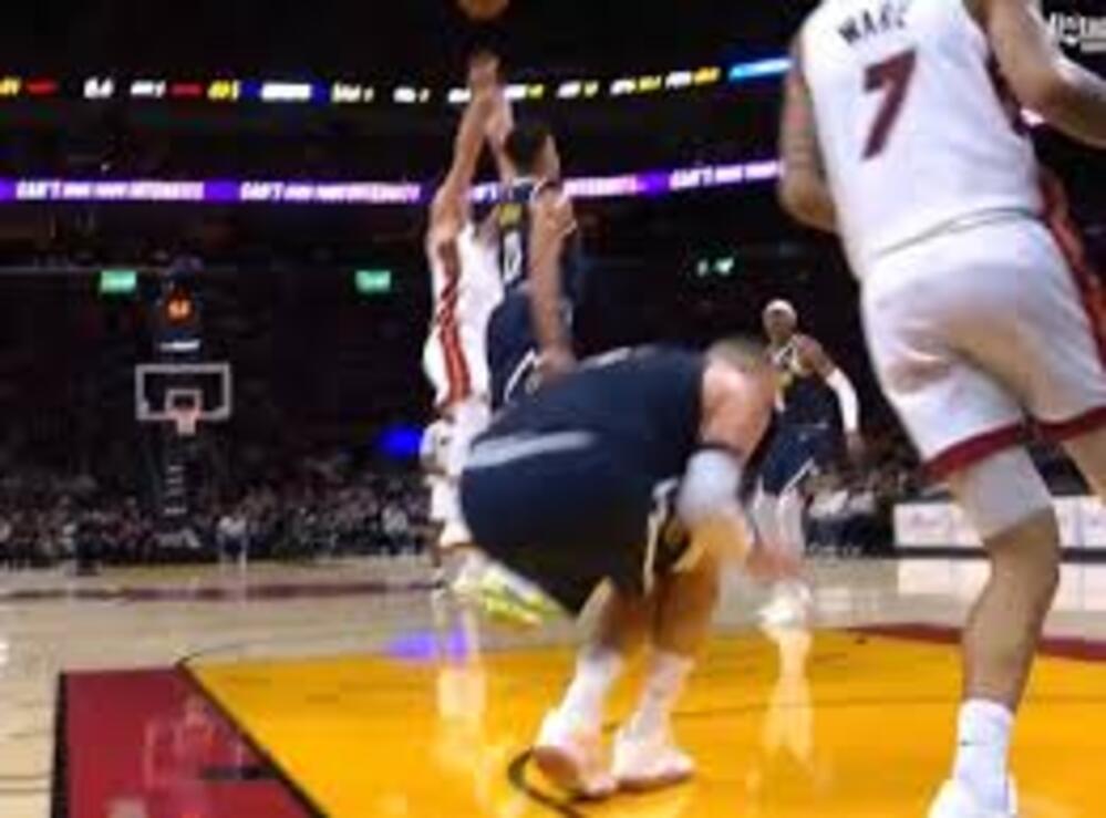 NIKOLA JOKIĆ teško se ozlijedio u posljednjem napadu prvog poluvremena utakmice u kojoj su njegovi Denver Nuggetsi igrali protiv Miami Heata. Jokićeva lijeva noga ispružila se, a zatim popustila nakon što ga je desna noga suigrača Spencera Jonesa udarila u lijevo koljeno.