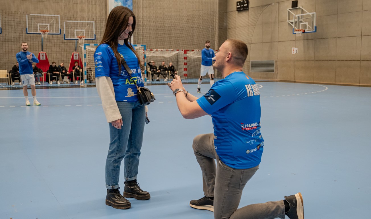На паркетот се случи сцена која ги разнежни сите присутни во салата. Валентин клекна пред својата избраничка Јована и ѝ го постави најважното прашање, а таа без двоумење го изговори судбоносното „Да“. Трибините еруптираа во аплауз и овации, претворајќи го спортскиот спектакл во вистинска бајка.