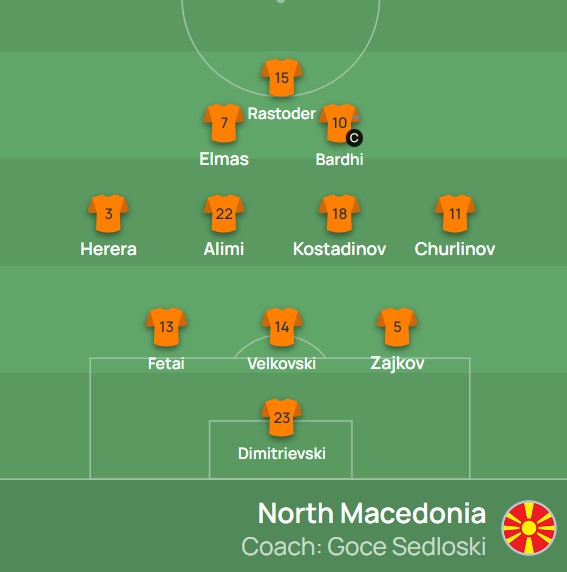 Исто така, Македонија за вечерашниот дуел го менува и тактичкиот распоред – наместо досегашното 3-5-2, сега селекцијата ќе игра во формација 3-4-2-1.
