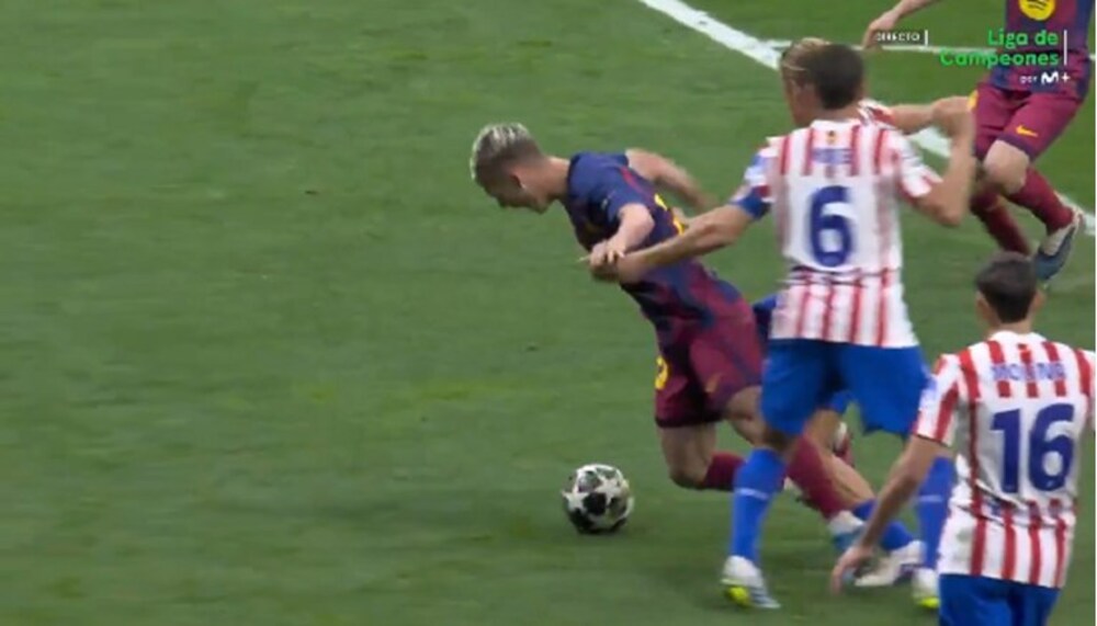 Osim toga, Turpinu zamjeraju i to što nije dosudio penal za Barcelonu u još jednoj situaciji. Dani Olmo bio je u prodoru prema golu Barcelone. Ušao je u kazneni prostor i onda se tamo Marcos Llorente s obje ruke naslonio na Olmova leđa. Pomogao mu je i Koke, koji je sprijeda ušao u Olma. Igrač Barcelone je tako udvajan pao.